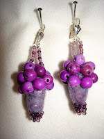 | Lime green felt earrings with seafoam and dark green beads $22 |